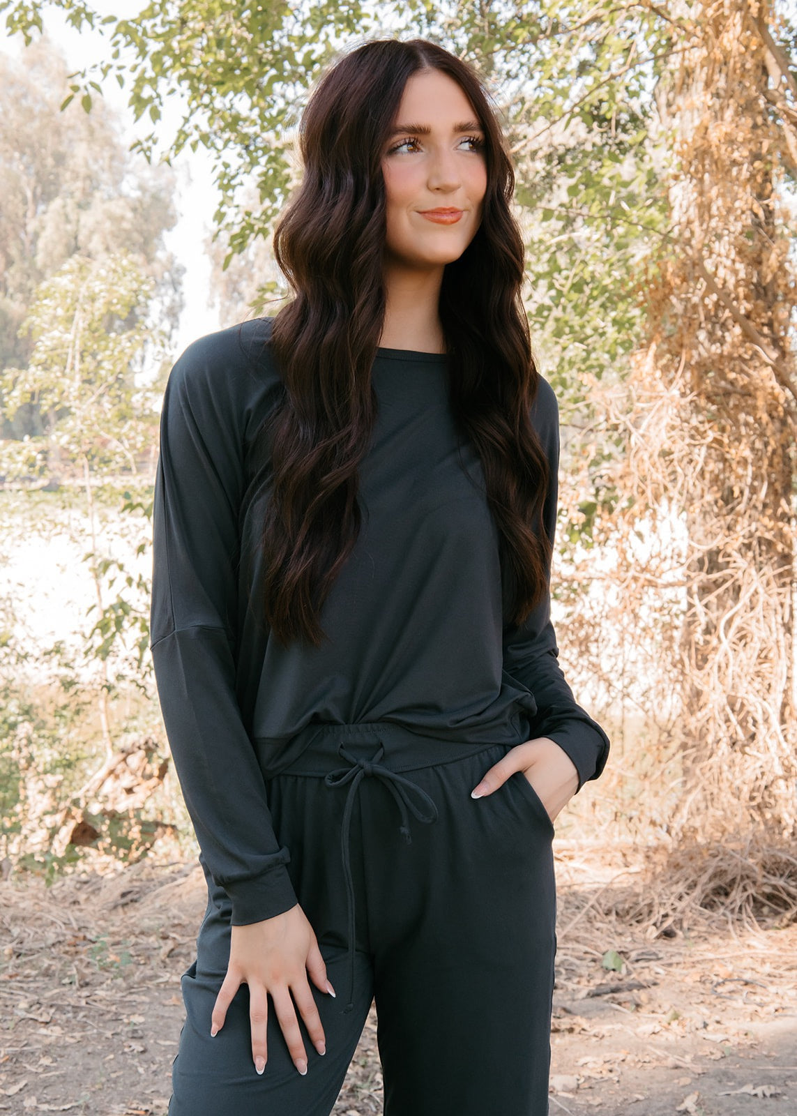 Upgrade your everyday style with the Keep it Simple Set, designed for ultimate comfort, versatility, and a flattering fit. Crafted from ultra-soft fabric, this cozy two-piece set features a minimal long-sleeve top and tie-front pants that move with you. And the best part? The pants have pockets! Wear this set on its own for a relaxed, laid-back look, or layer it with your favorite outerwear to create a more elevated outfit. This set is a wardrobe essential for looking put together with minimal effort and feeling your best, no matter where the day takes you.